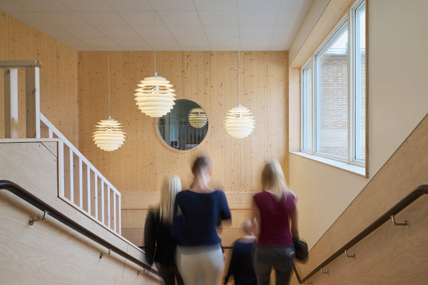 “The students were moved from a school with modular classrooms and we weighed the pros and cons of leaving the wood visible in the stairwells and on the walls for a long time. In the end, we decided to actually expose as much of the wood as we could. This discussion highlights the difficulties of practically demonstrating all the benefits of wood. We have no metrics for many of the soft values we experience in wooden schools. But the municipality took the plunge in exposing the wooden surfaces and the result has been nothing but positive,” says Jessica.