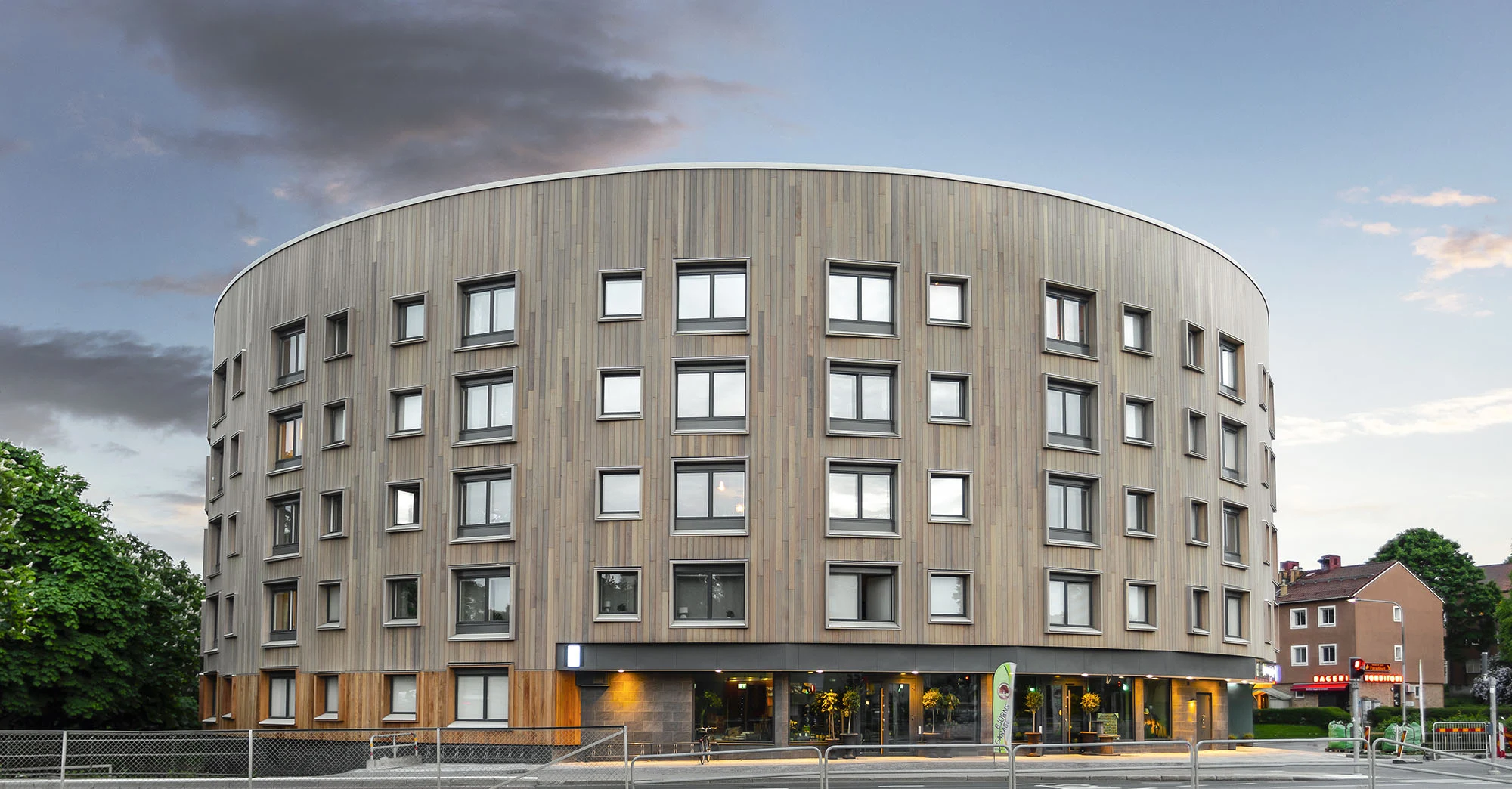 Ved Johannesborgsparken i Linköping i Sverige står byens første boligblokk i KL-tre, Valla Berså. Og med den runde formen ligner huset på et lysthus, med en åpning mot parken. Martinsons står for leveransen av KL-tre til det spektakulære bygget, som er gjennomsyret av en idé om bærekraft helt ned på detaljnivå. Bygningen inneholder 69 utleieleiligheter fordelt på 25 ettromsleiligheter, 27 toromsleiligheter og 17 treromsleiligheter. I nederste etasje i bygningen er det lokaler til butikk- og kafévirksomhet. Byggeprosjektet ble innledet våren 2016, og bygningen sto innflytningsklar sent høsten 2017.