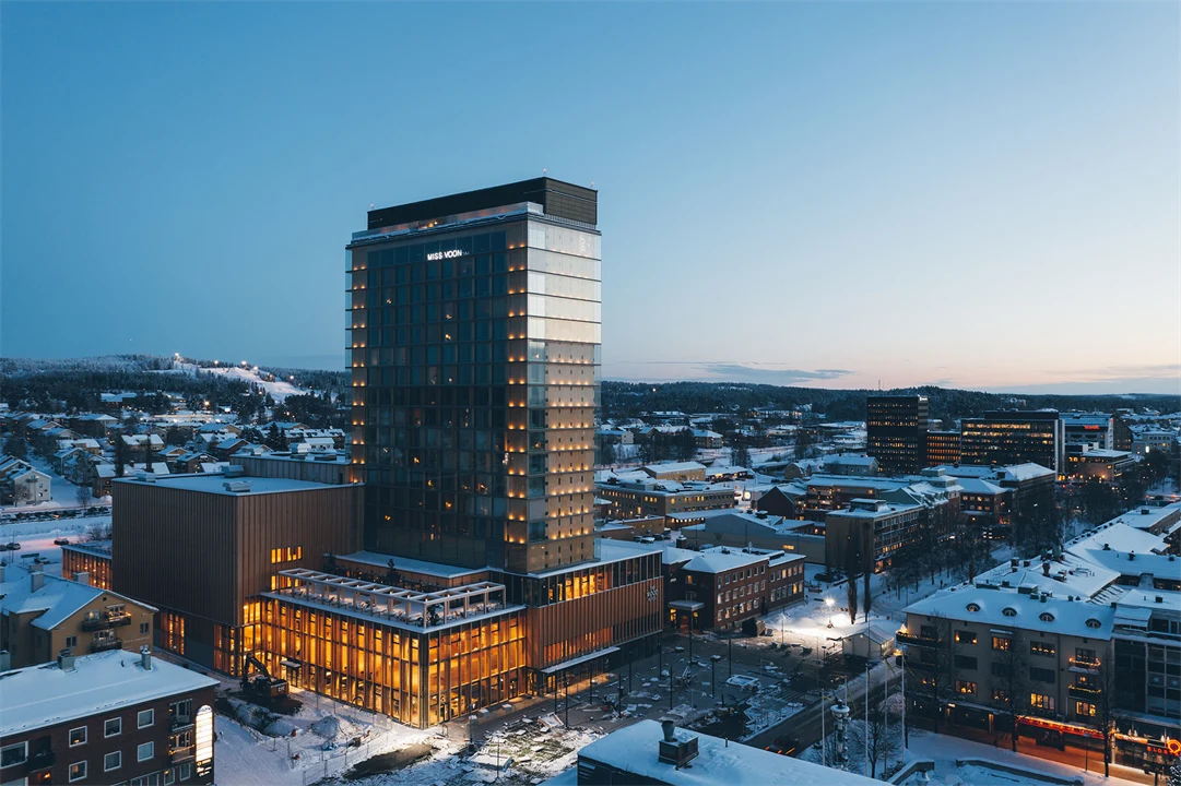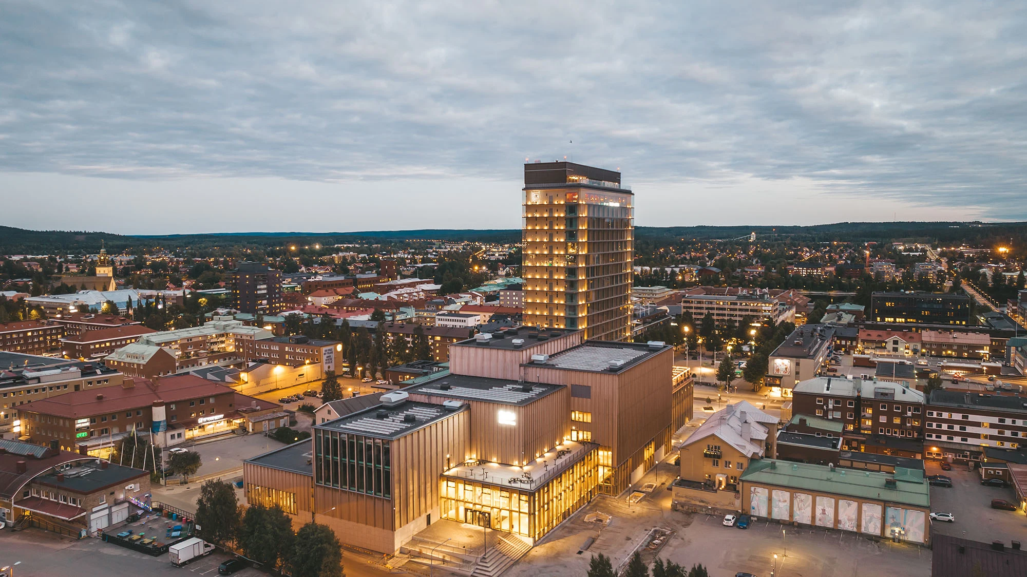 Sara Kulturhus i Skellefteå er et tydelig eksempel på hvordan skogen integreres i det urbane miljøet. Med sine 76 meter er dette et av verdens høyeste trehus. Så å si hele bygningen er konstruert av tre fra skoger i regionen, noe som ikke bare reduserer behovet for klimaskadelige byggematerialer som stål og betong, men også styrker den regionale skogindustrien og skaper en sterk kobling mellom natur og by.