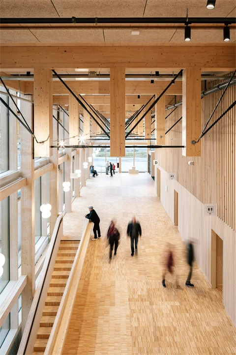 I løpet av levetiden sin vil treet i bygningen binde nærmere 9000 tonn karbondioksid, noe som er dobbelt så mye som materialproduksjonen, transporten og byggingen på stedet har gitt opphav til.