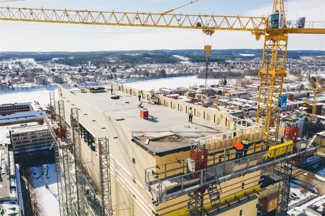 Mitt i centrala Skellefteå reser sig Sara kulturhus. Ett av världens högsta trähus som med sina 20 våningar sträcker sig ca 80 meter upp från marken. Vi på Martinsons var involverade i såväl materielleverans, projektering och montering. Den totala volymen som omfattar stommen är cirka 10 700 kubikmeter KL-trä och 2 600 kubikmeter limträ.