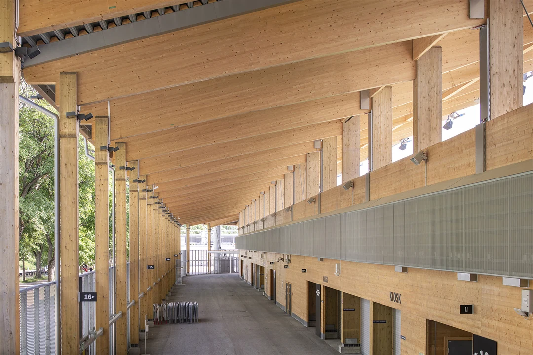 I efterhand kunde valet av utomhusläktare i limträ tyckas självklart: det var mer kostnadseffektivt och hade dessutom både praktiska och estetiska fördelar.